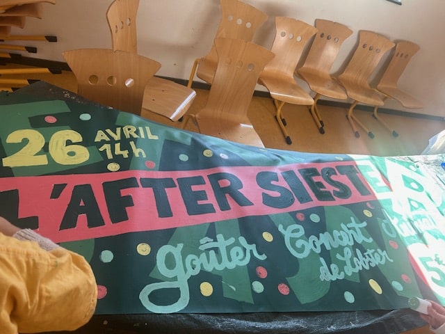 Les enfants du périscolaire ont fabriqué 2 banderoles dans le cadre d’ateliers co animés par les Francas et l’association Hors saison qui anime l’évènement After sièste du 26 avril prochain.